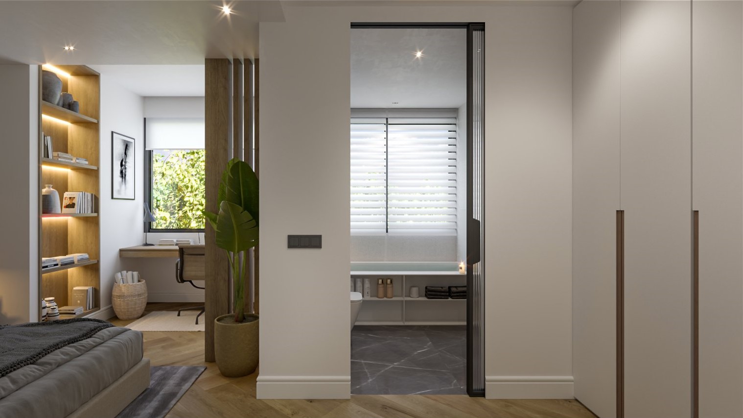 🚪 La zona de descanso está cuidadosamente distribuida a través de un espacioso distribuidor. Dispondrás de 4 habitaciones en suite, cada una diseñada para ofrecer el máximo confort. Los 4 baños completos cuentan con elegantes detalles, incluyendo plato de ducha y bañera, para que disfrutes de un spa en casa. Las otras 3 habitaciones dobles ofrecen armarios empotrados de alta calidad.
