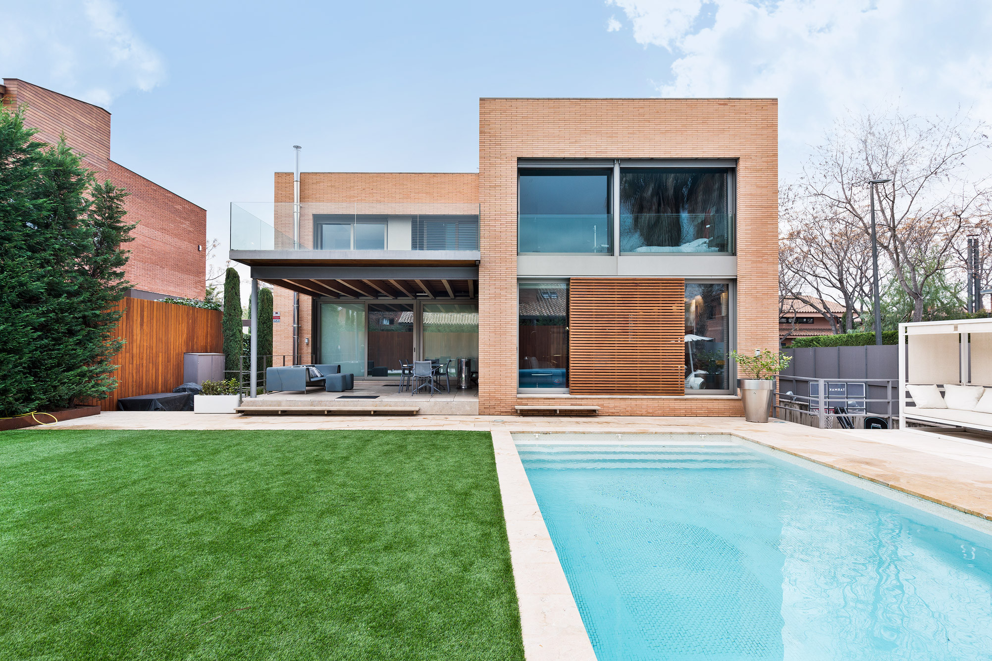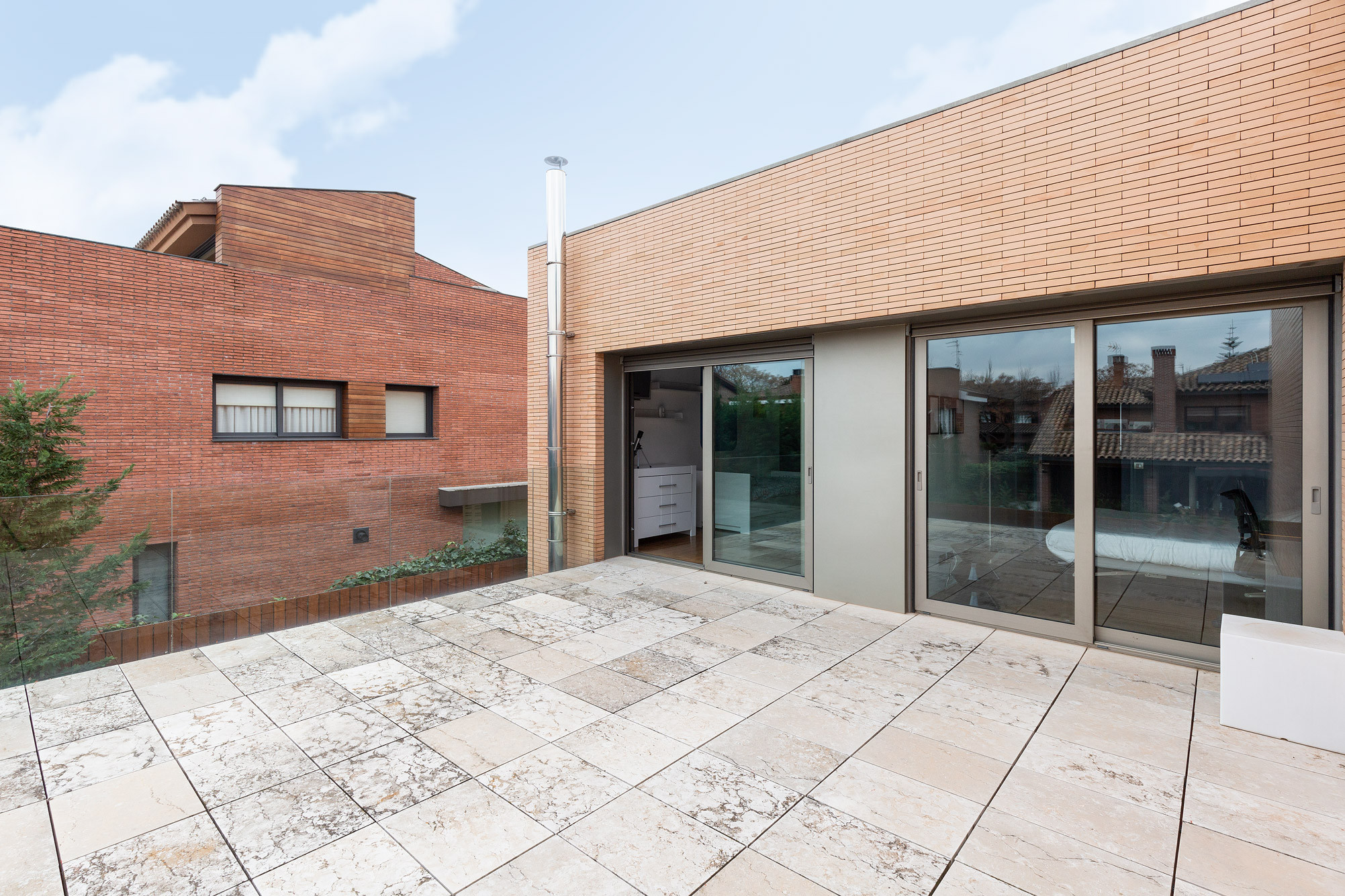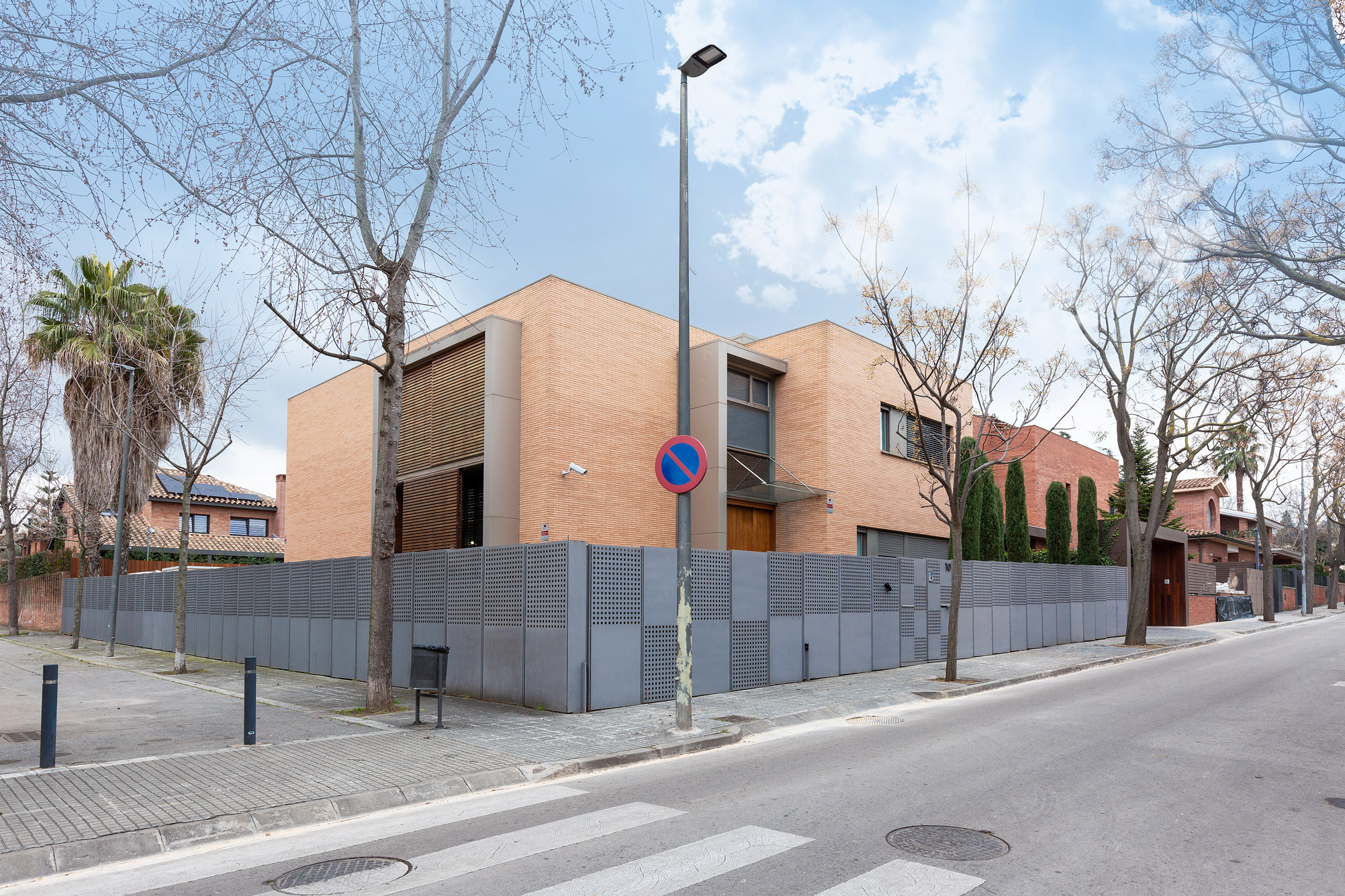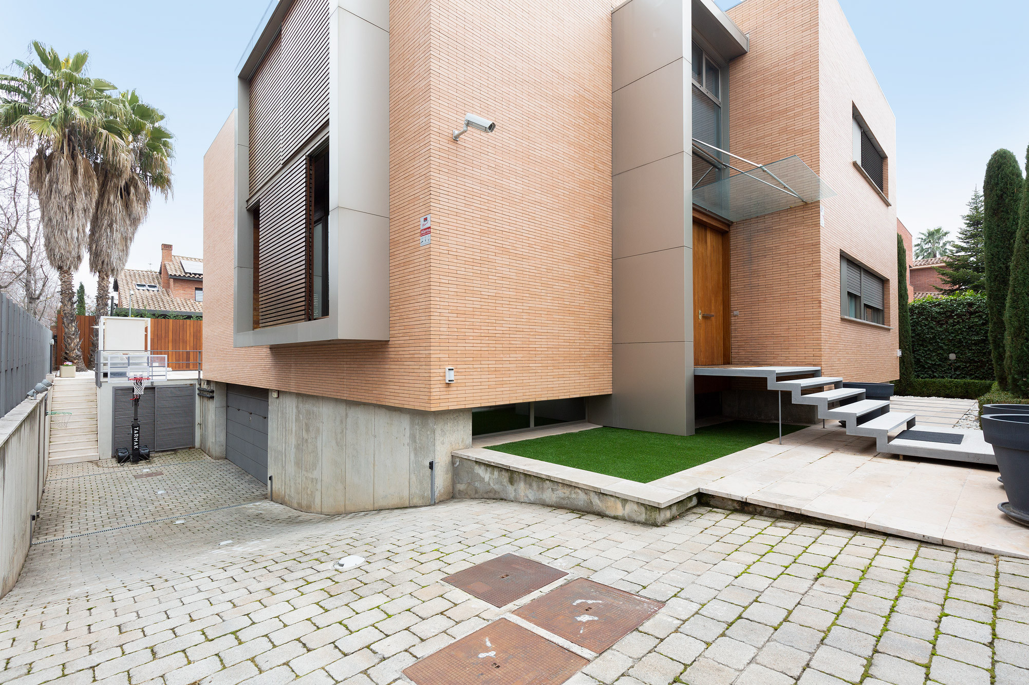- Fachada cúbica de ladrillo macizo de cara vista, diseñada a cuatro vientos.