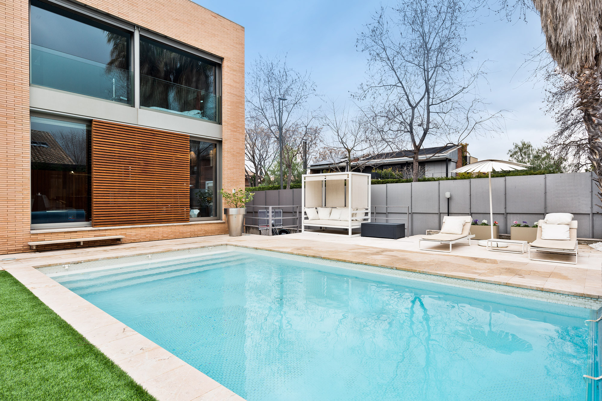 - Carpintería de aluminio anodizado Technal, persianas de aluminio y lamas de madera.