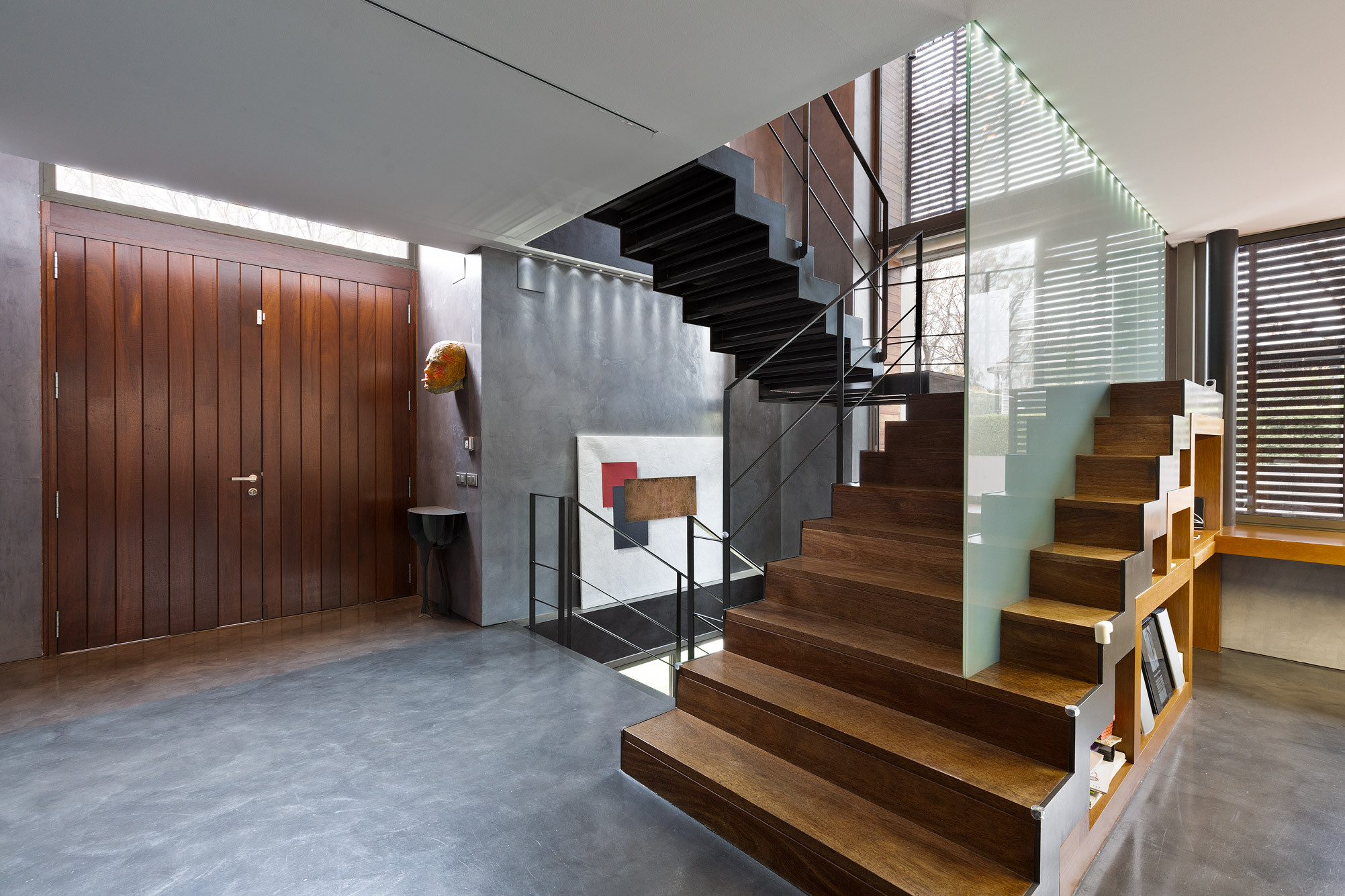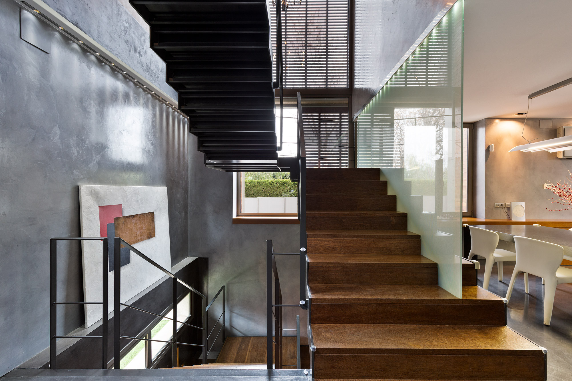 - Escalera principal de madera natural con estructura de acero, con posibilidad de instalar un ascensor.