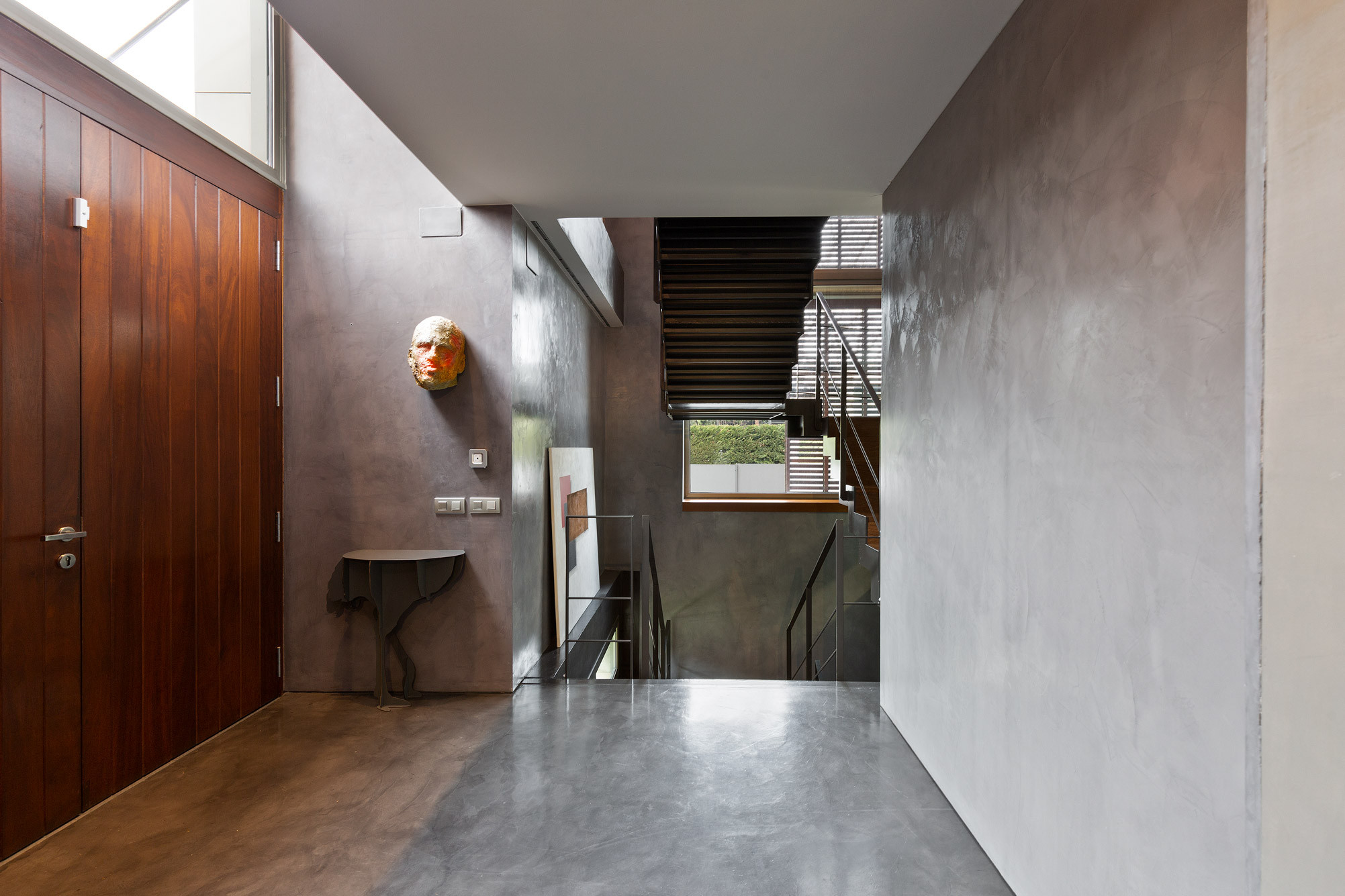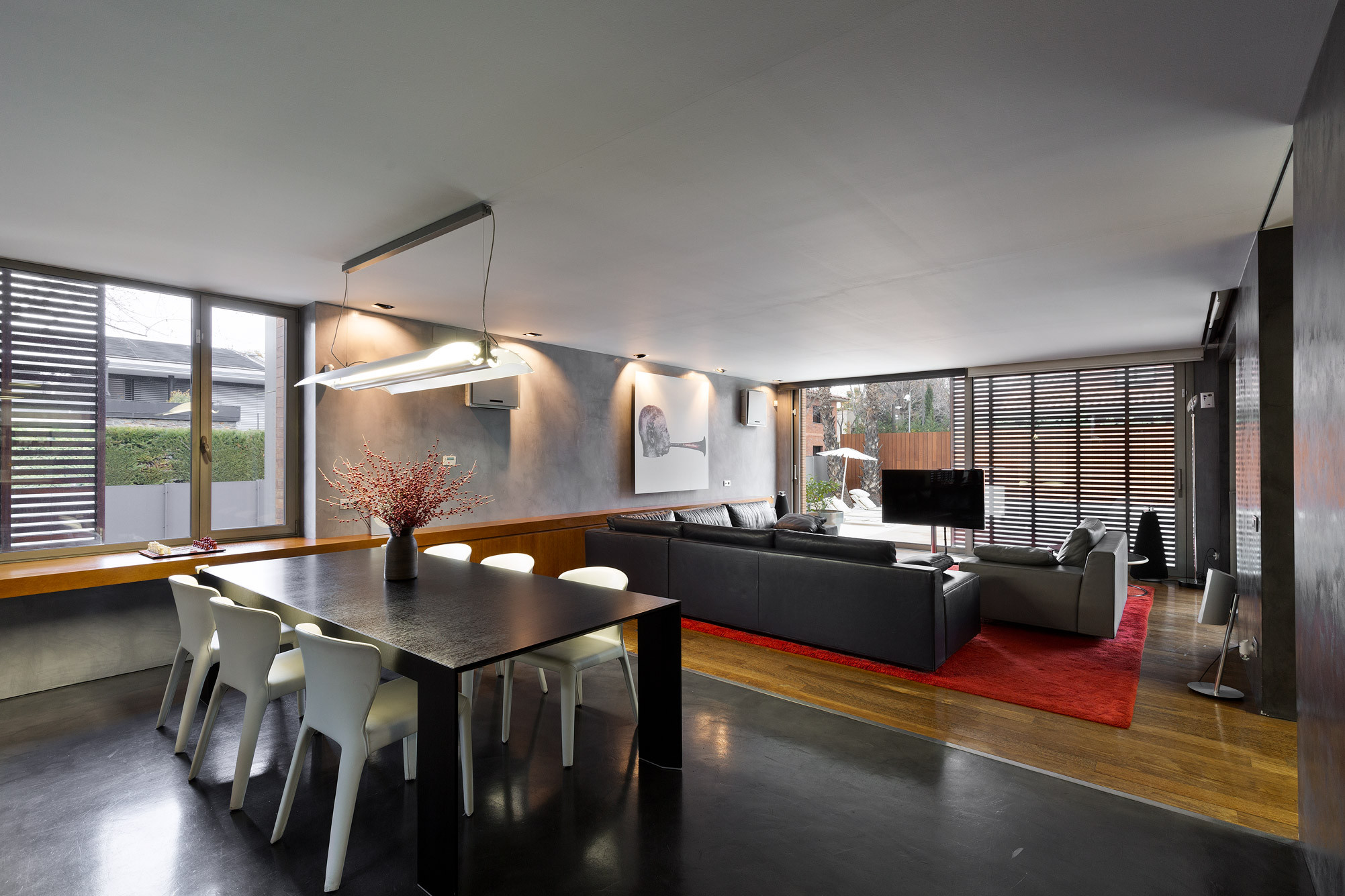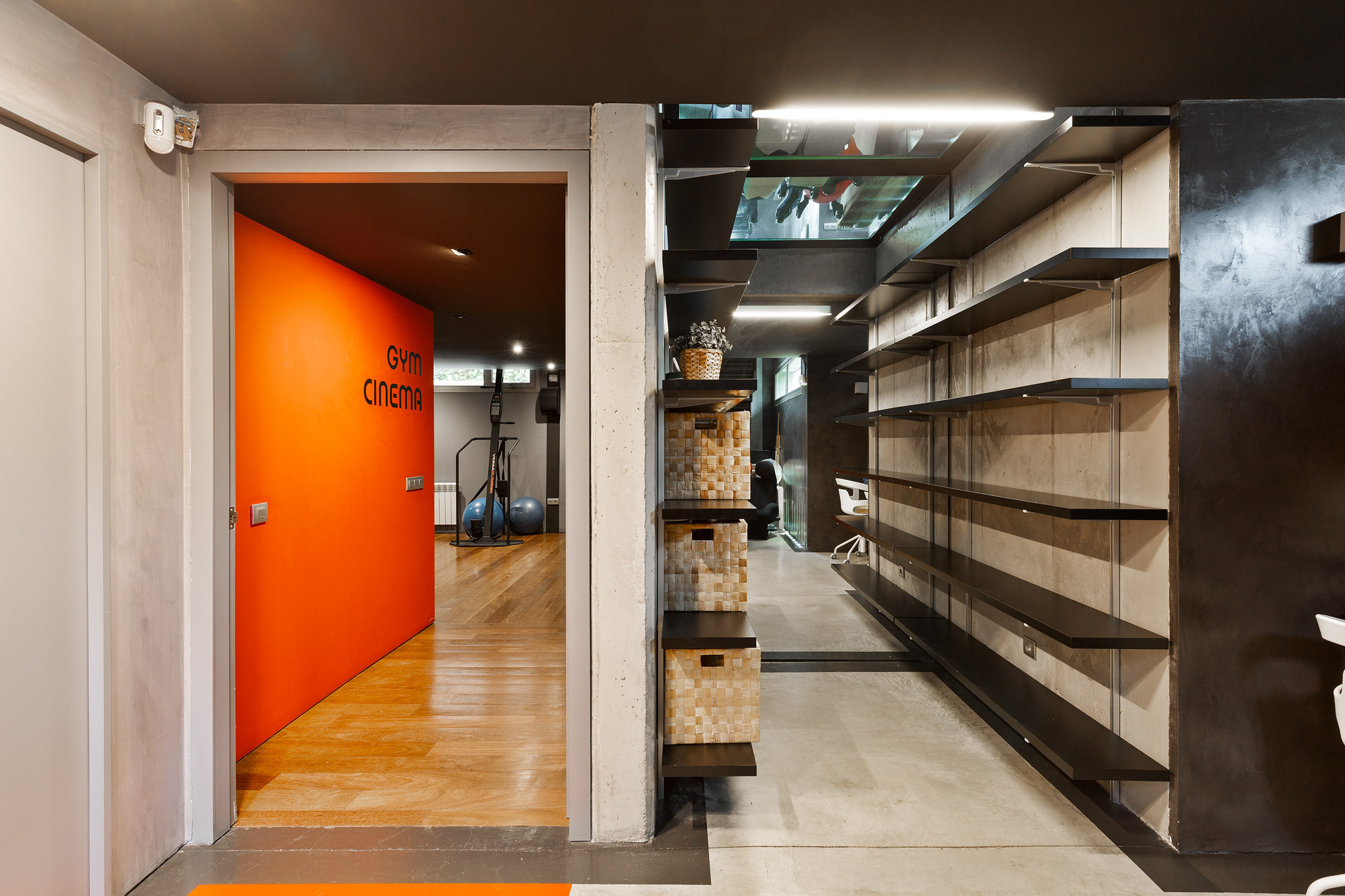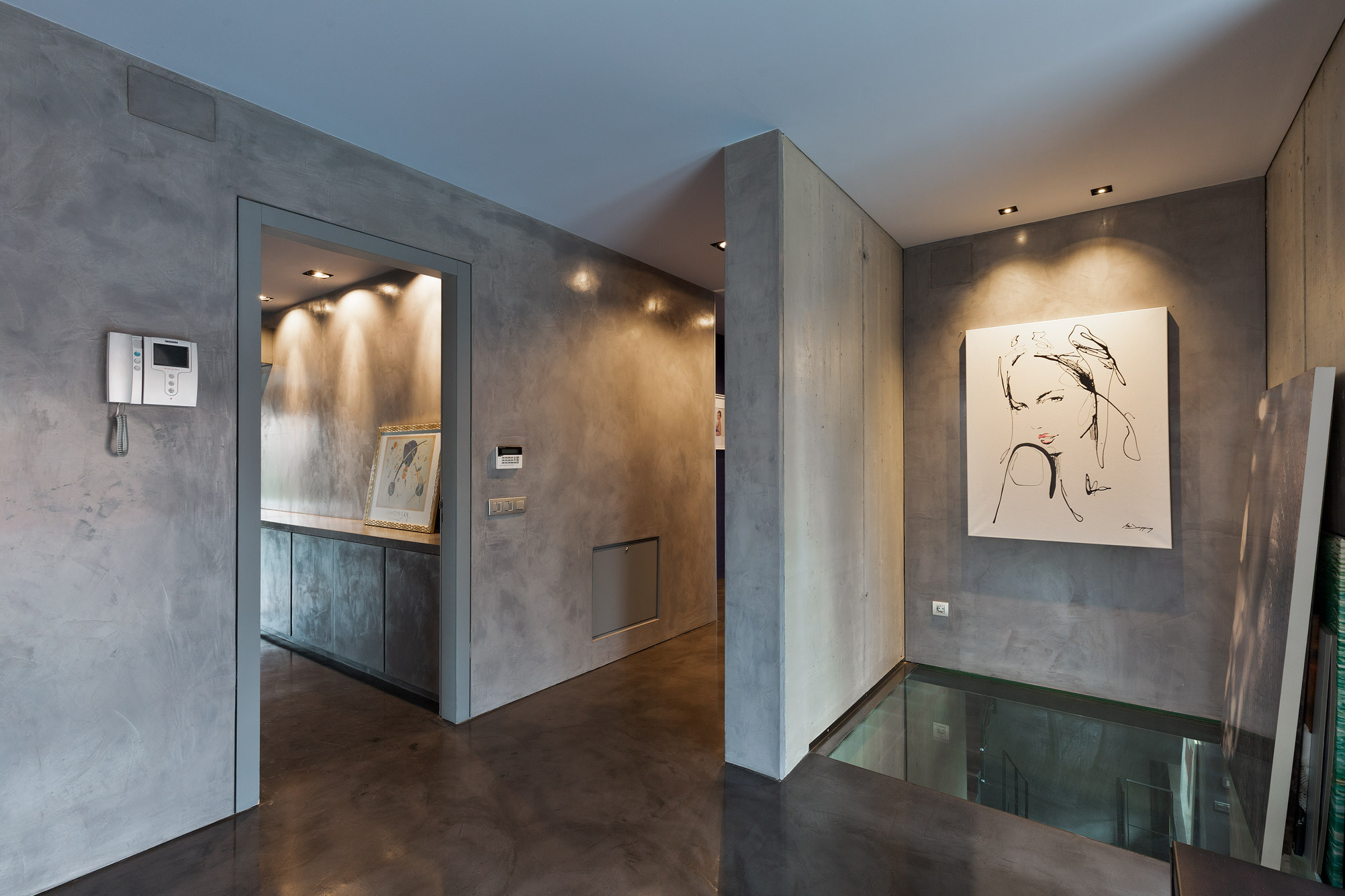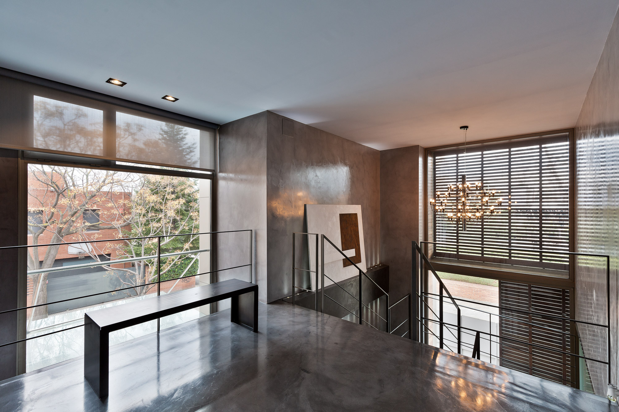 - Suelos de gres, parquet y microcemento gris con calefacción radiante.