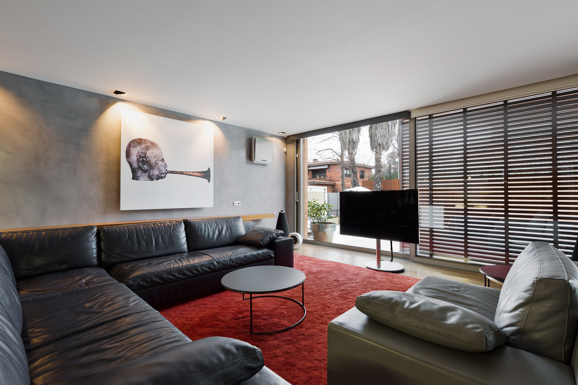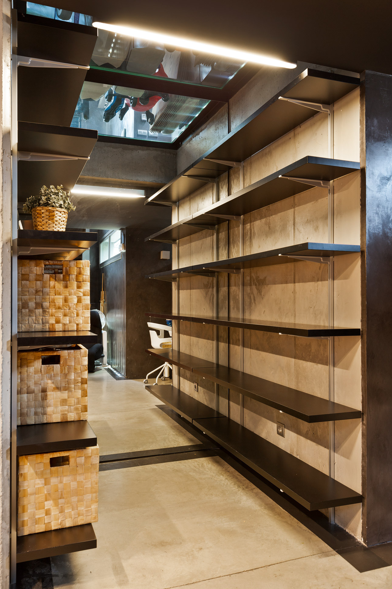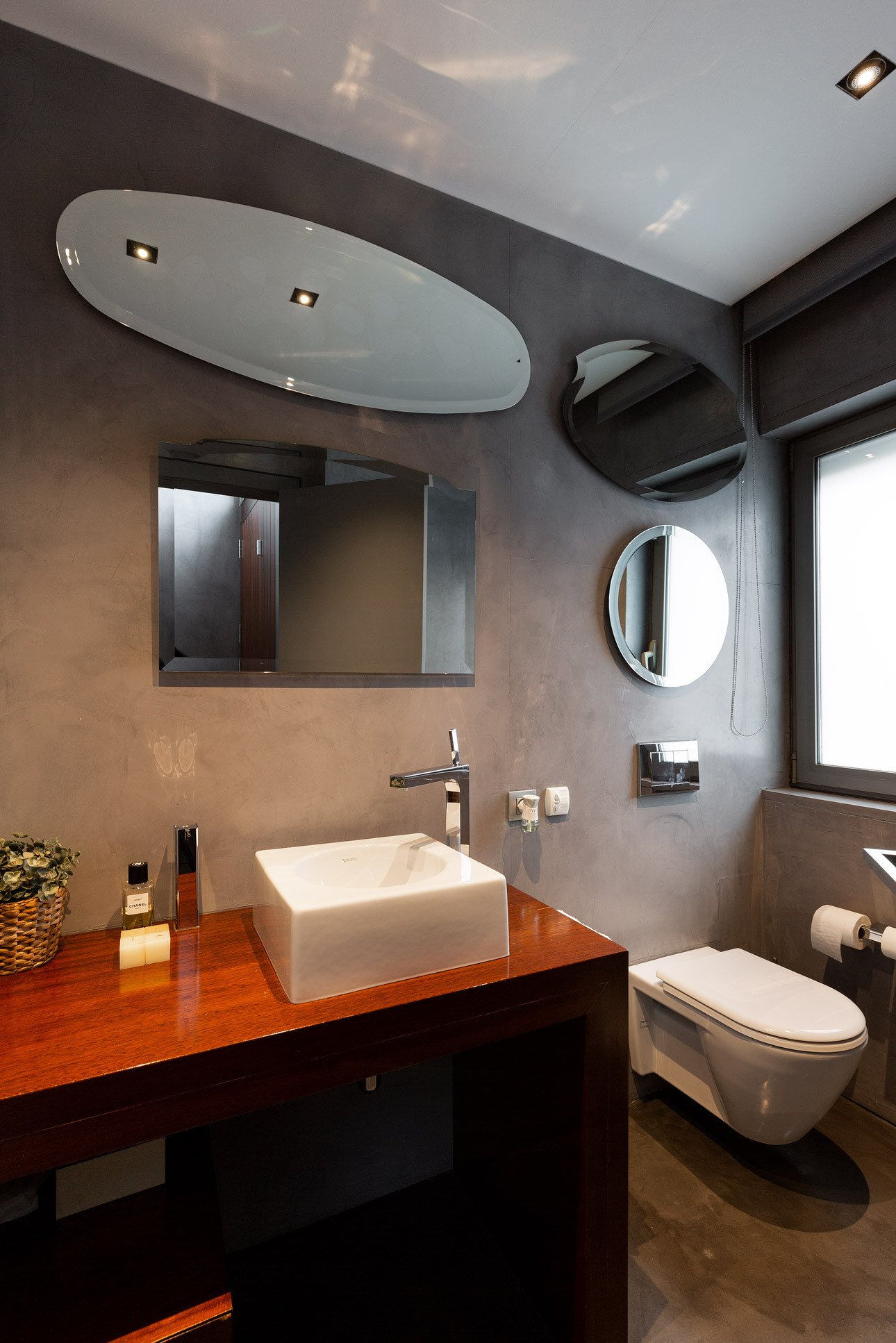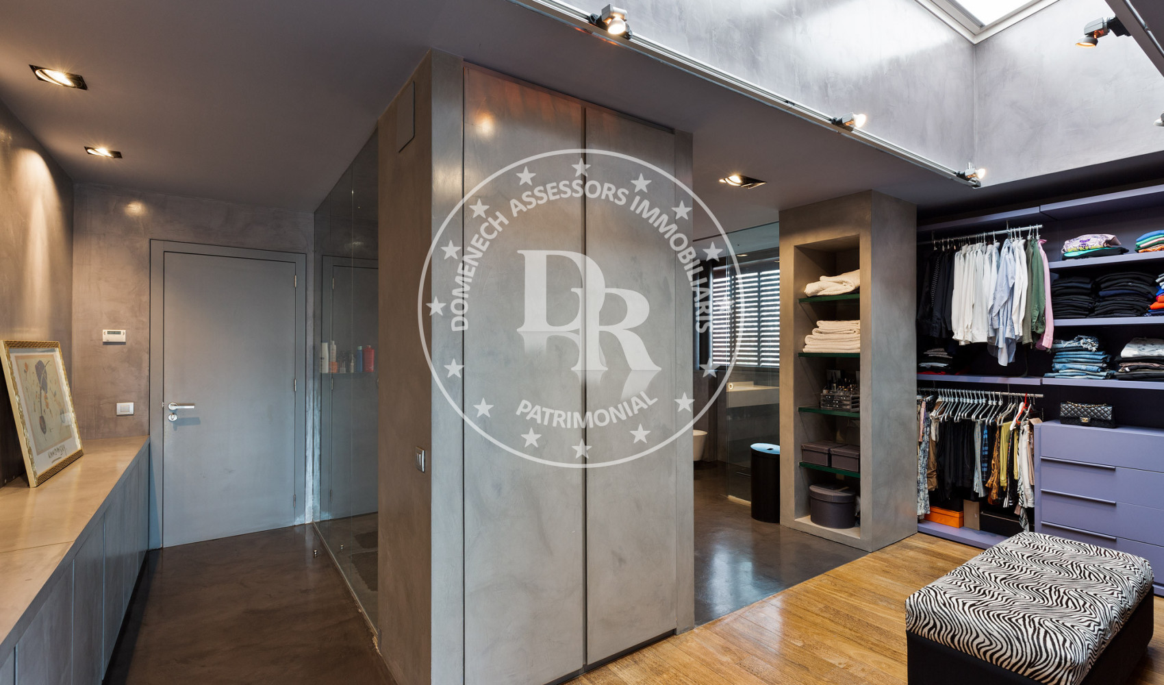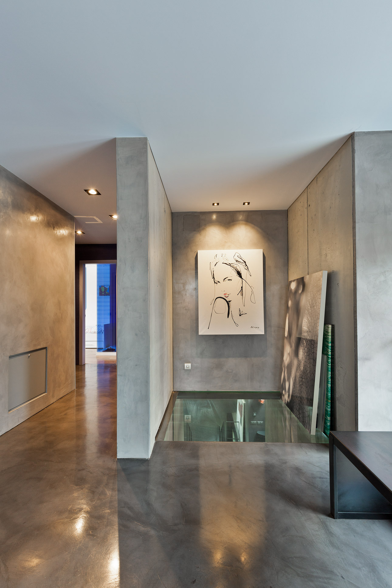 - Suelos de gres, parquet y microcemento gris con calefacción radiante.