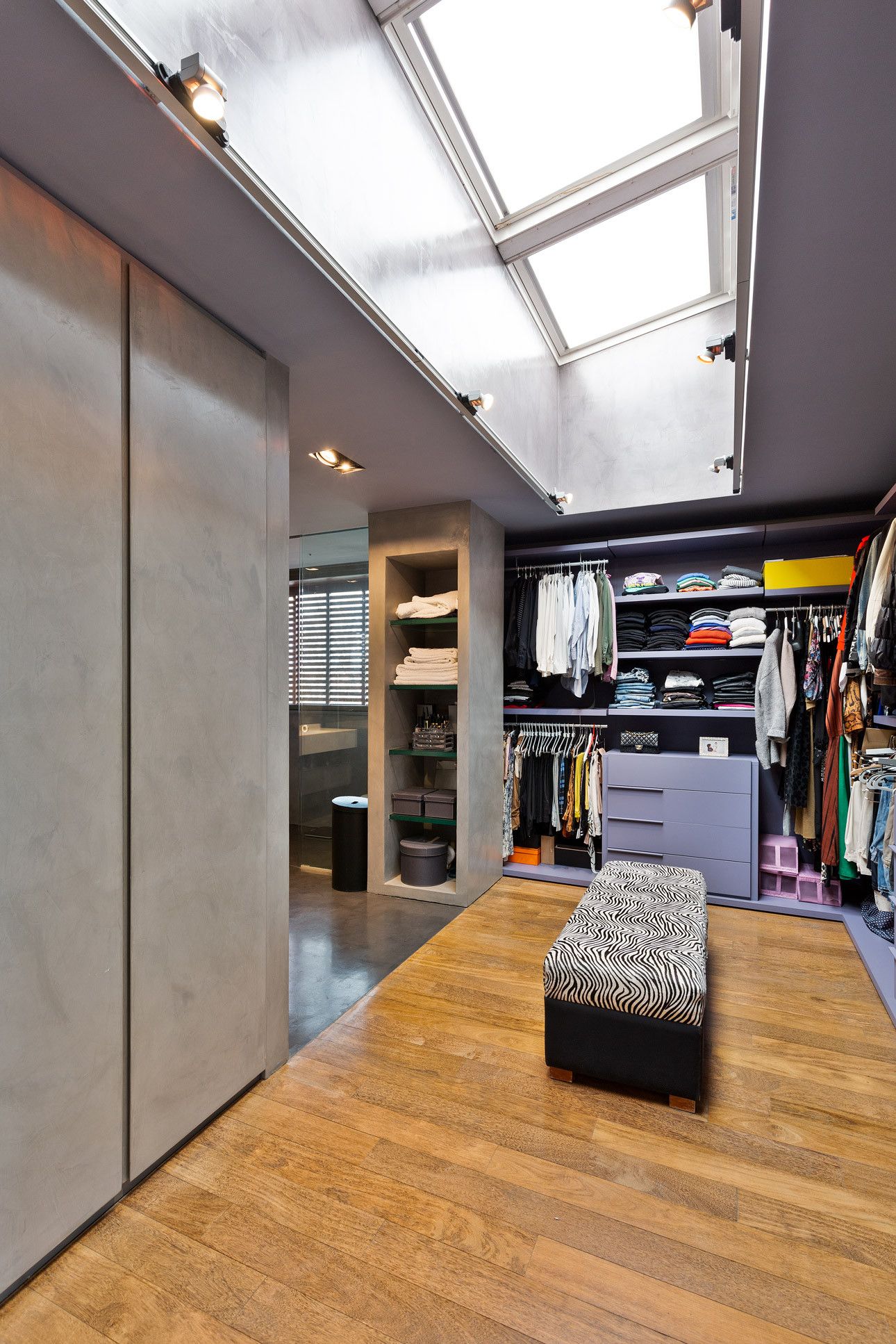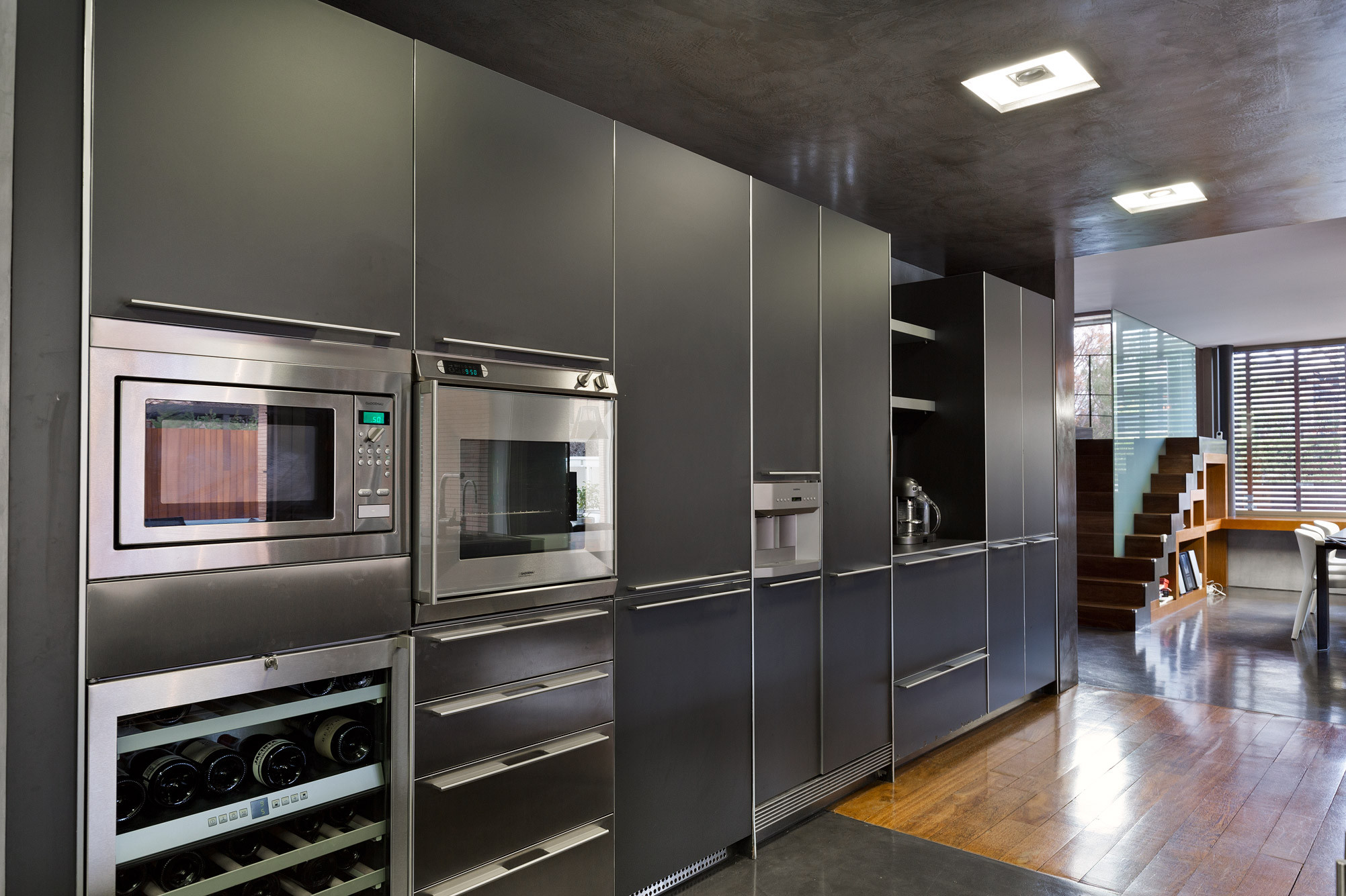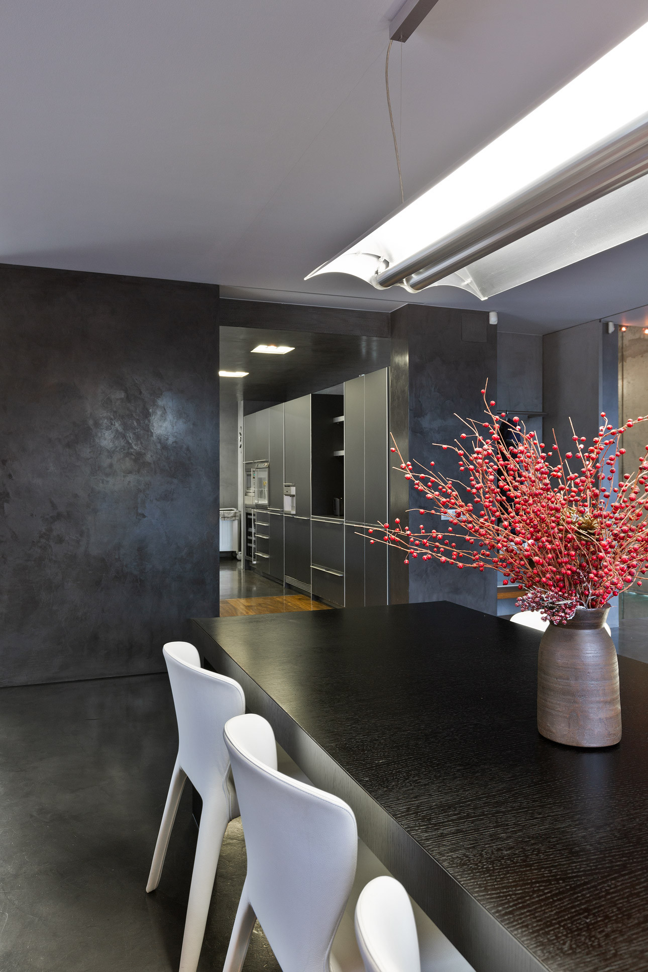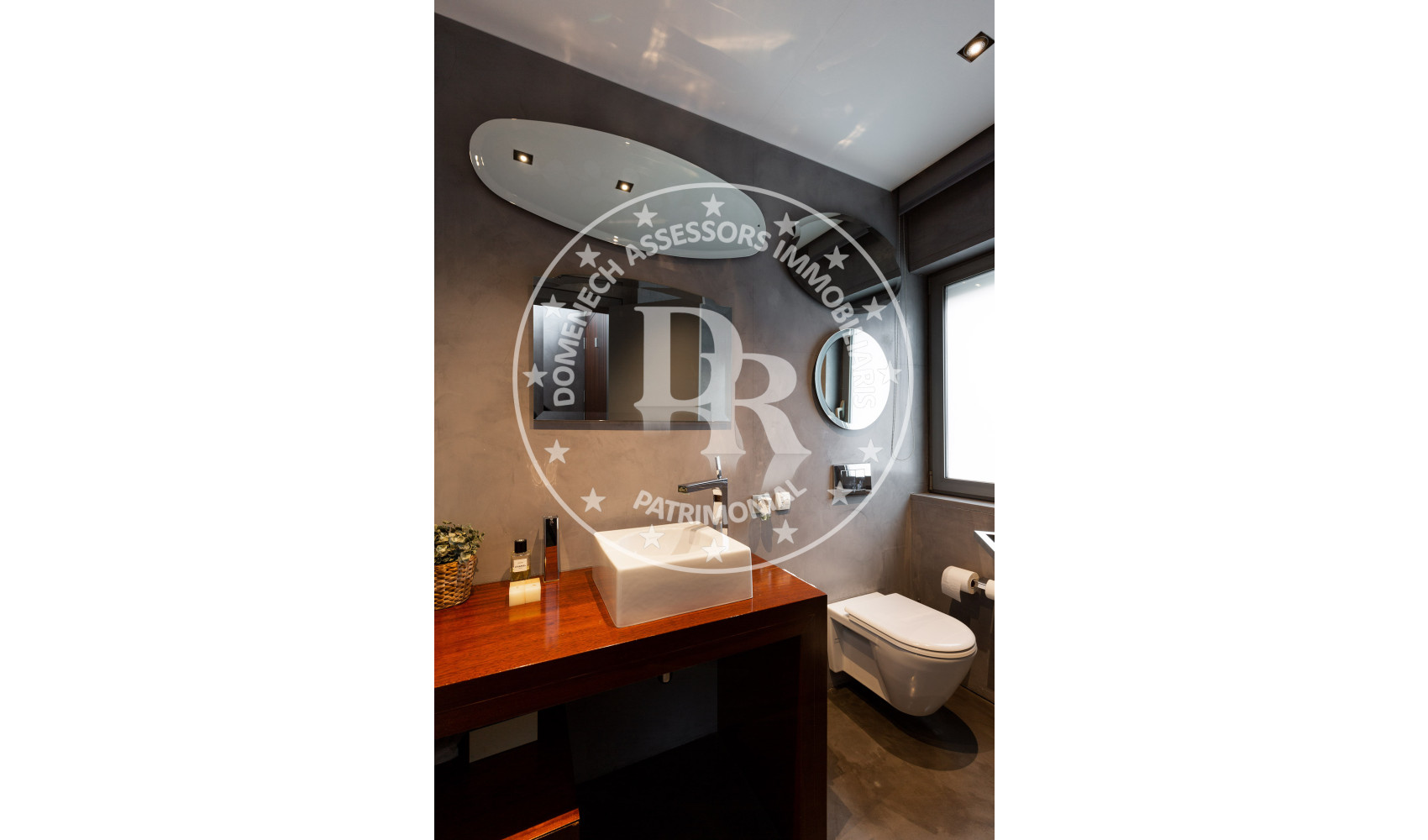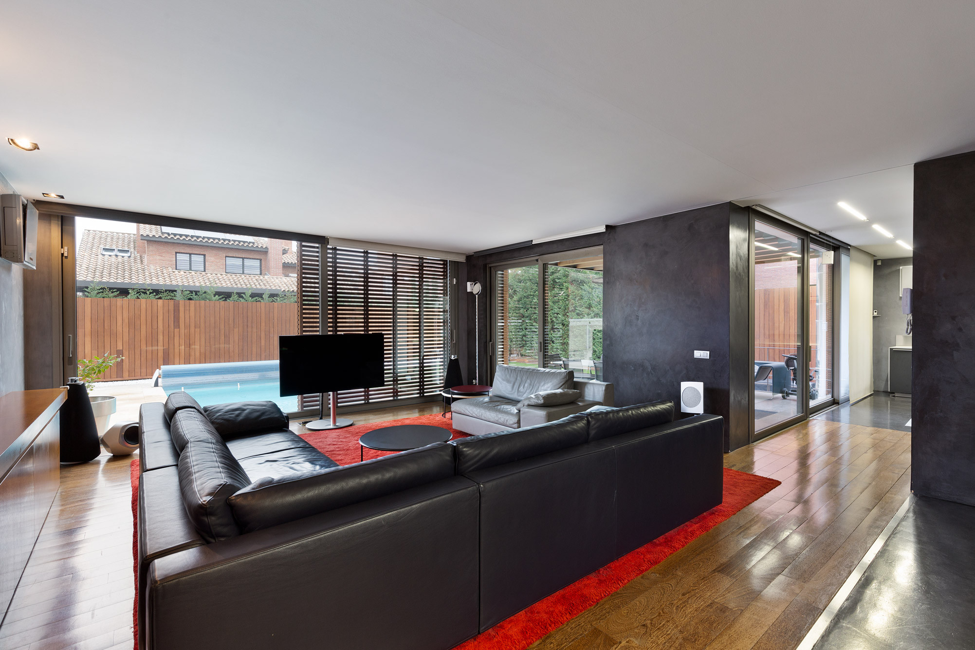 - Suelos de gres, parquet y microcemento gris con calefacción radiante.