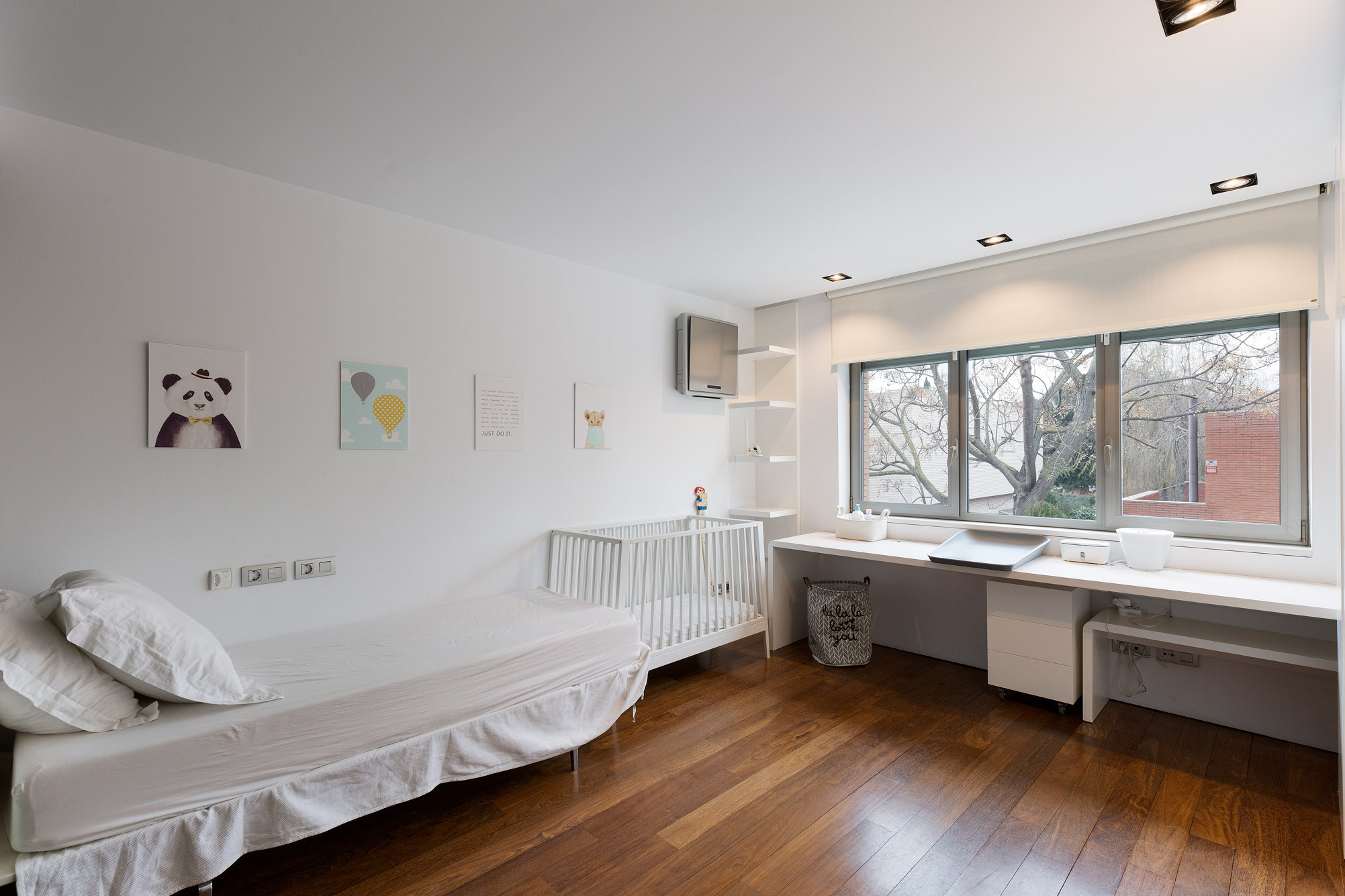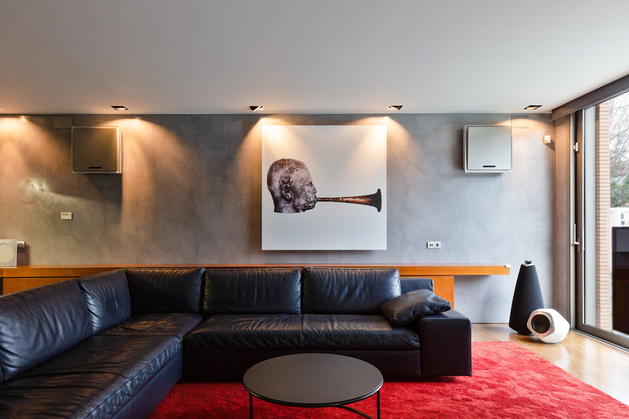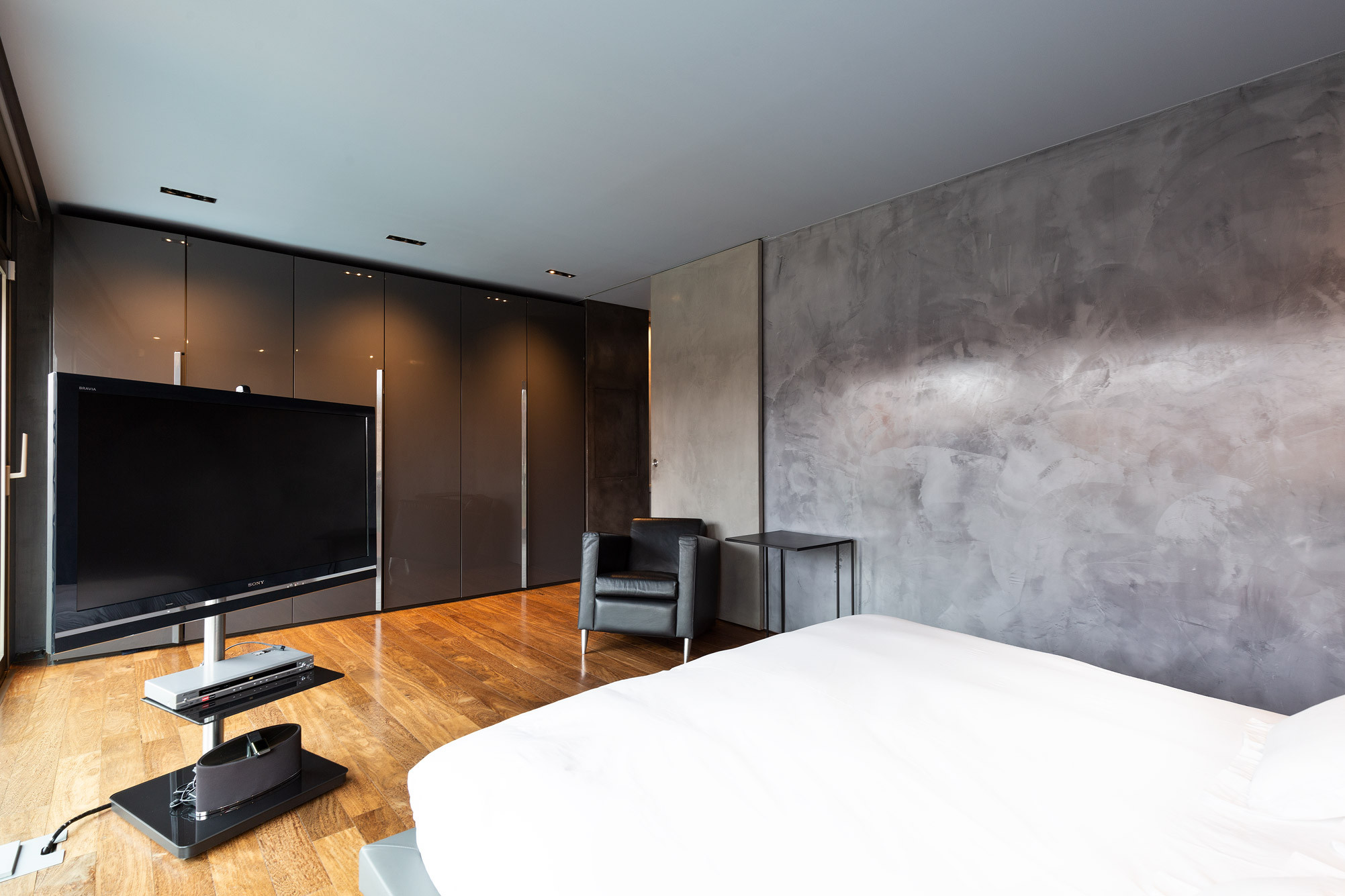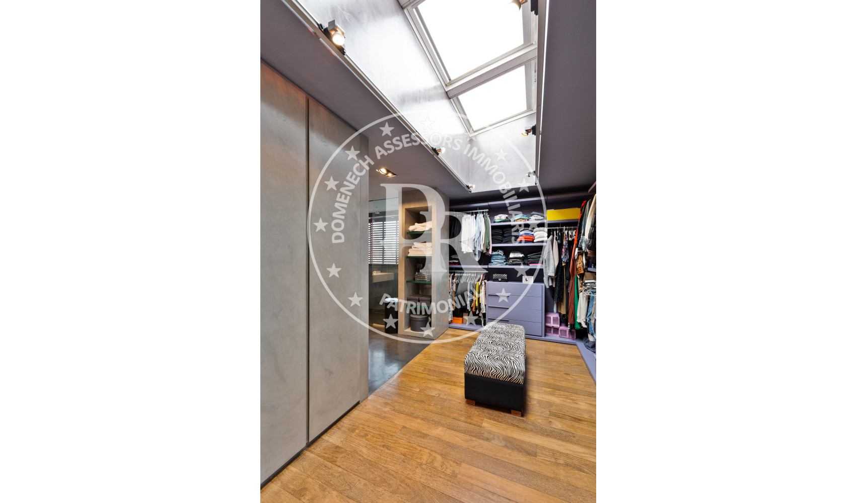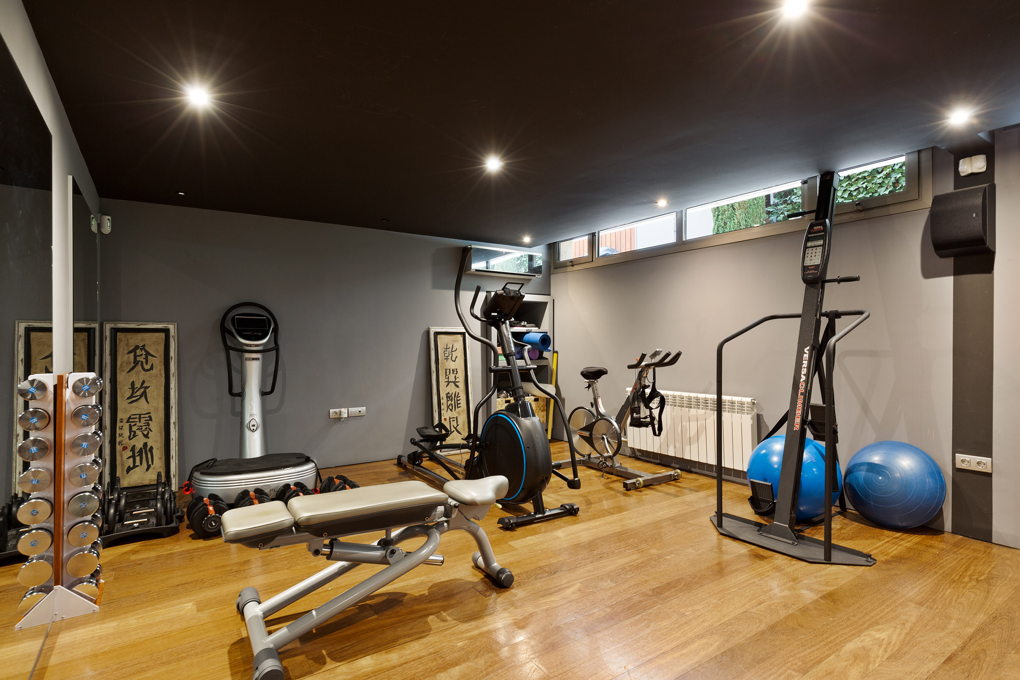 - Suelos de gres, parquet y microcemento gris con calefacción radiante.