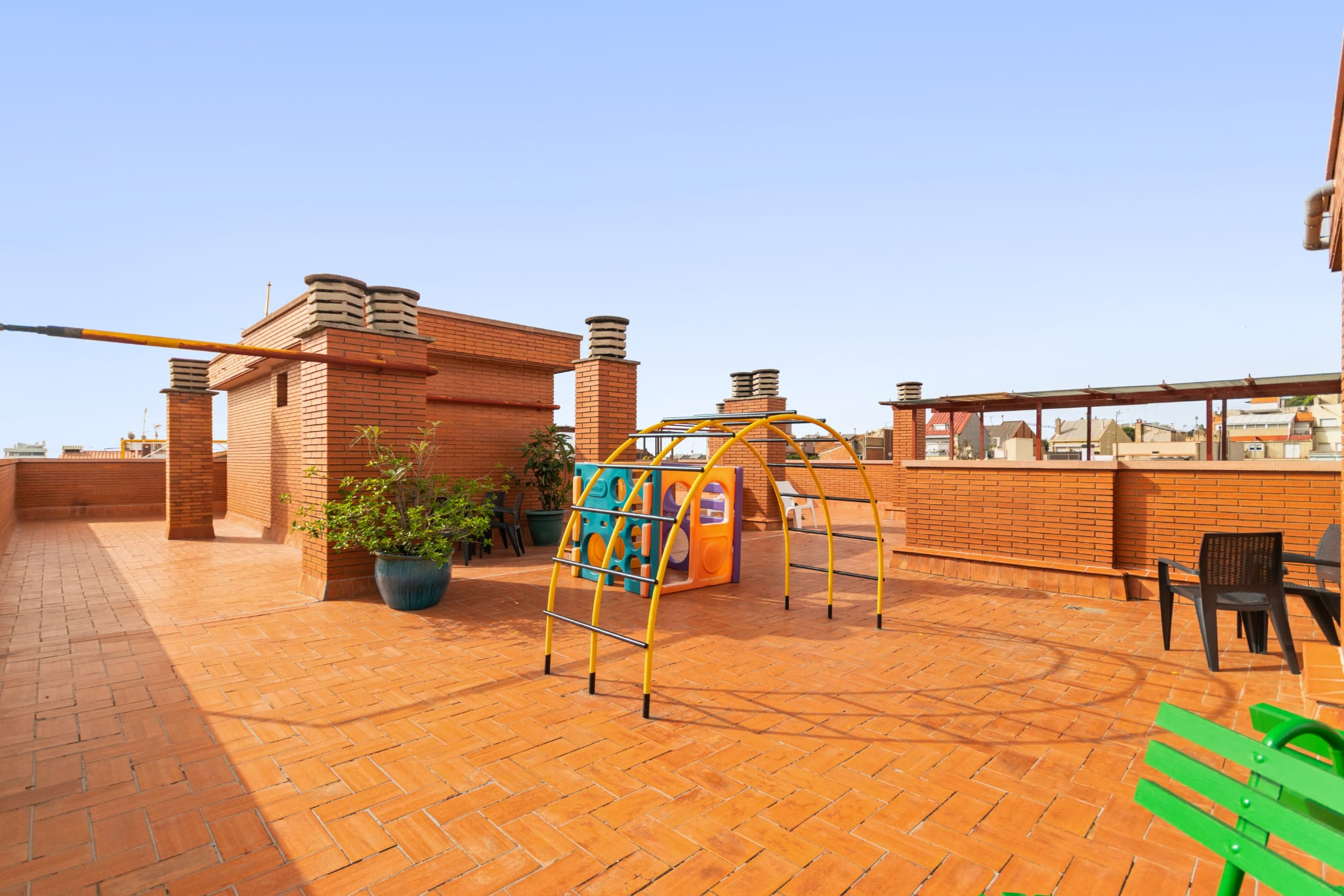 - 🌇 Zonas comunitarias en la azotea: dos piscinas (infantil y adultos), zona infantil, ping-pong, tumbonas, mesas y sillas para disfrutar del sol o de reuniones informales