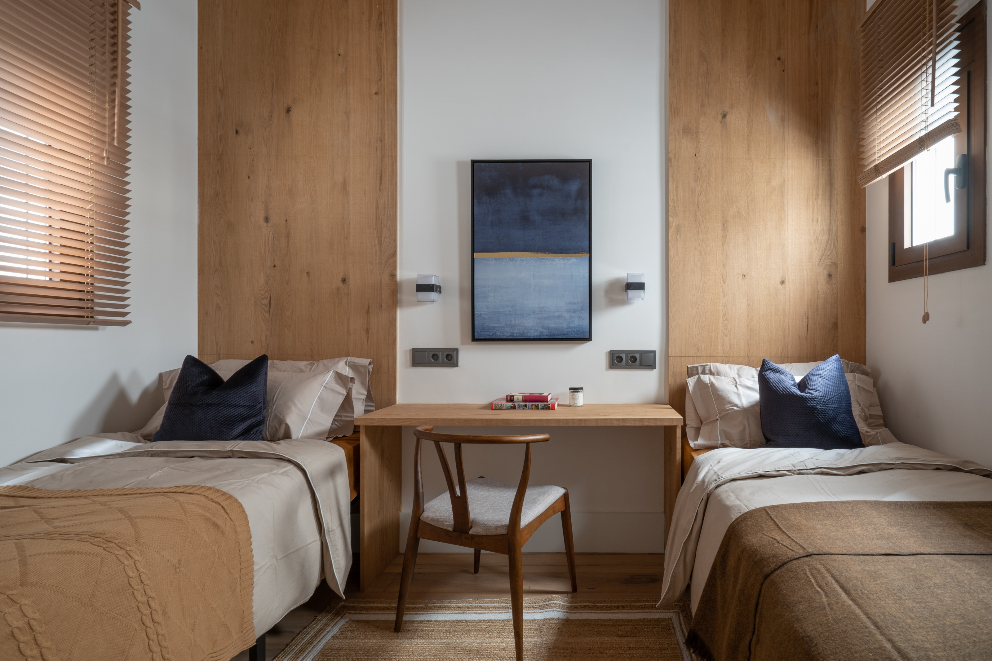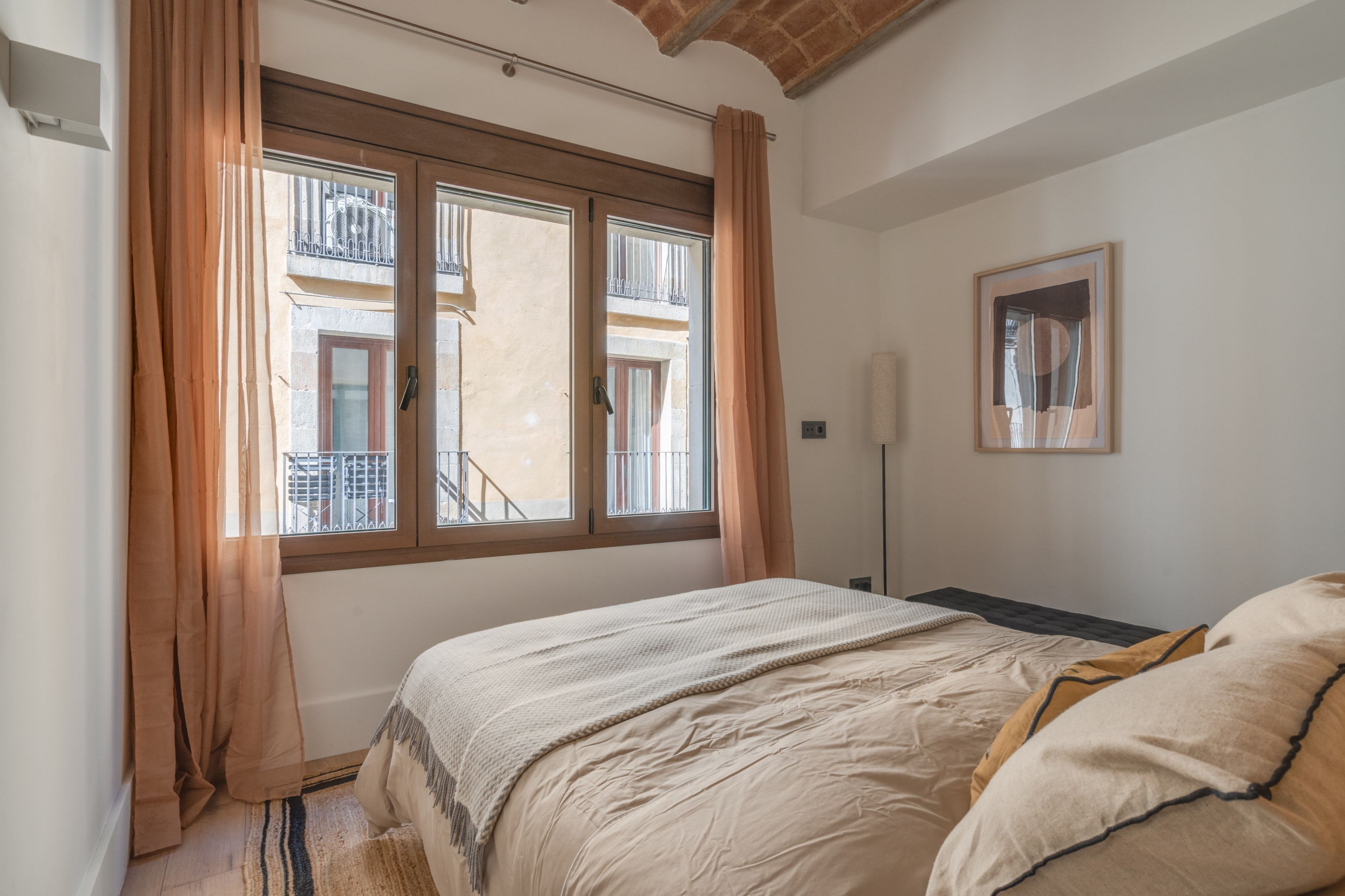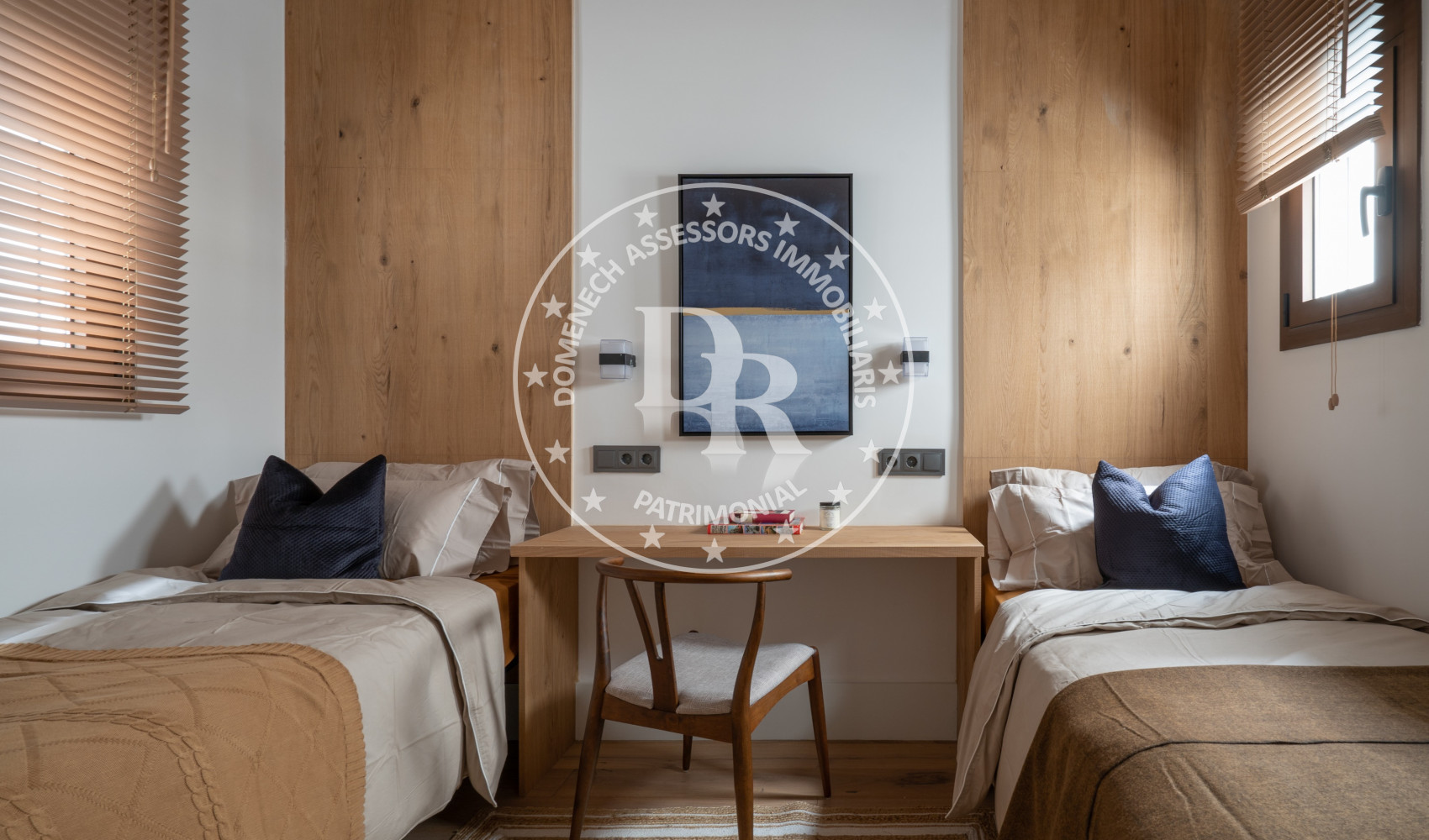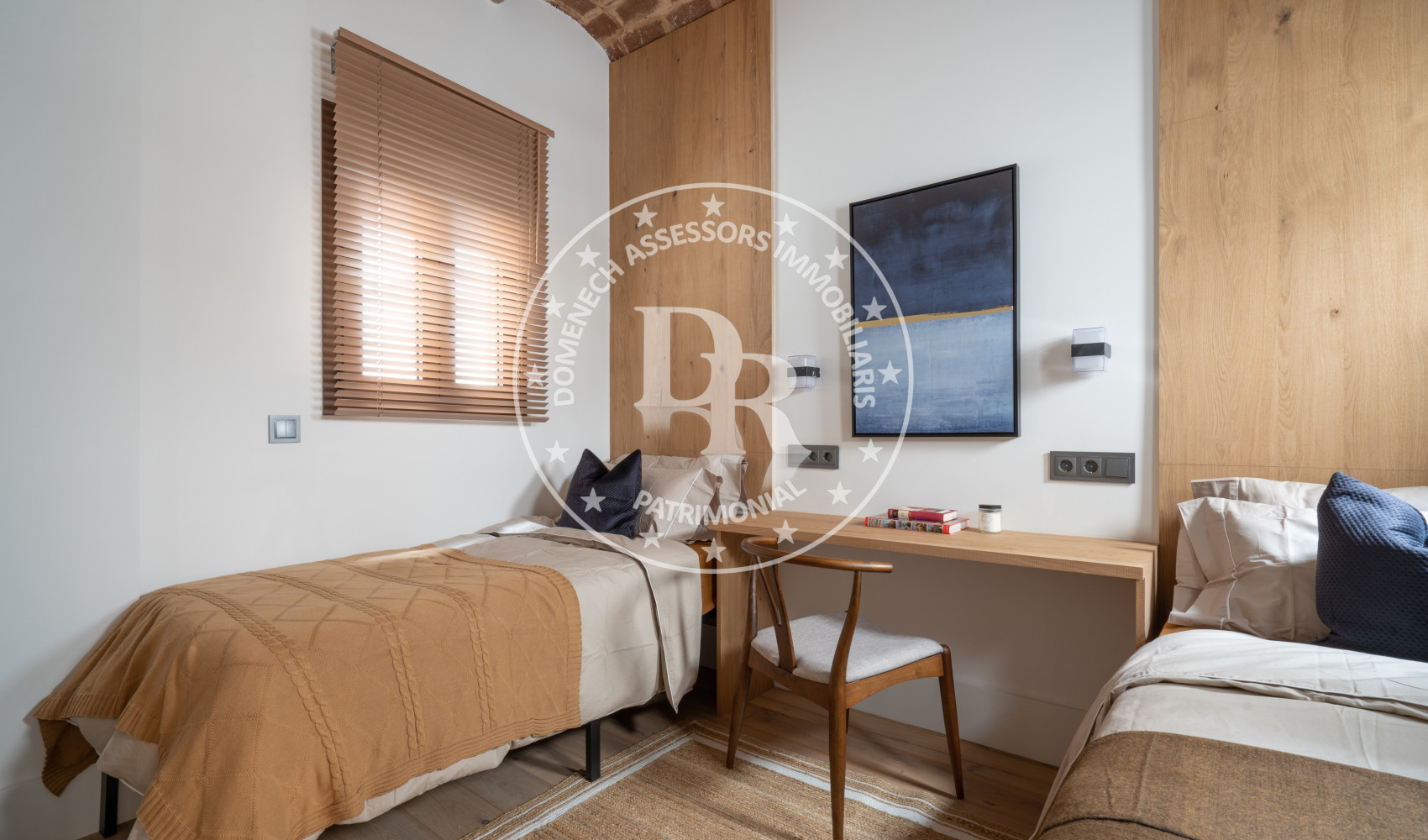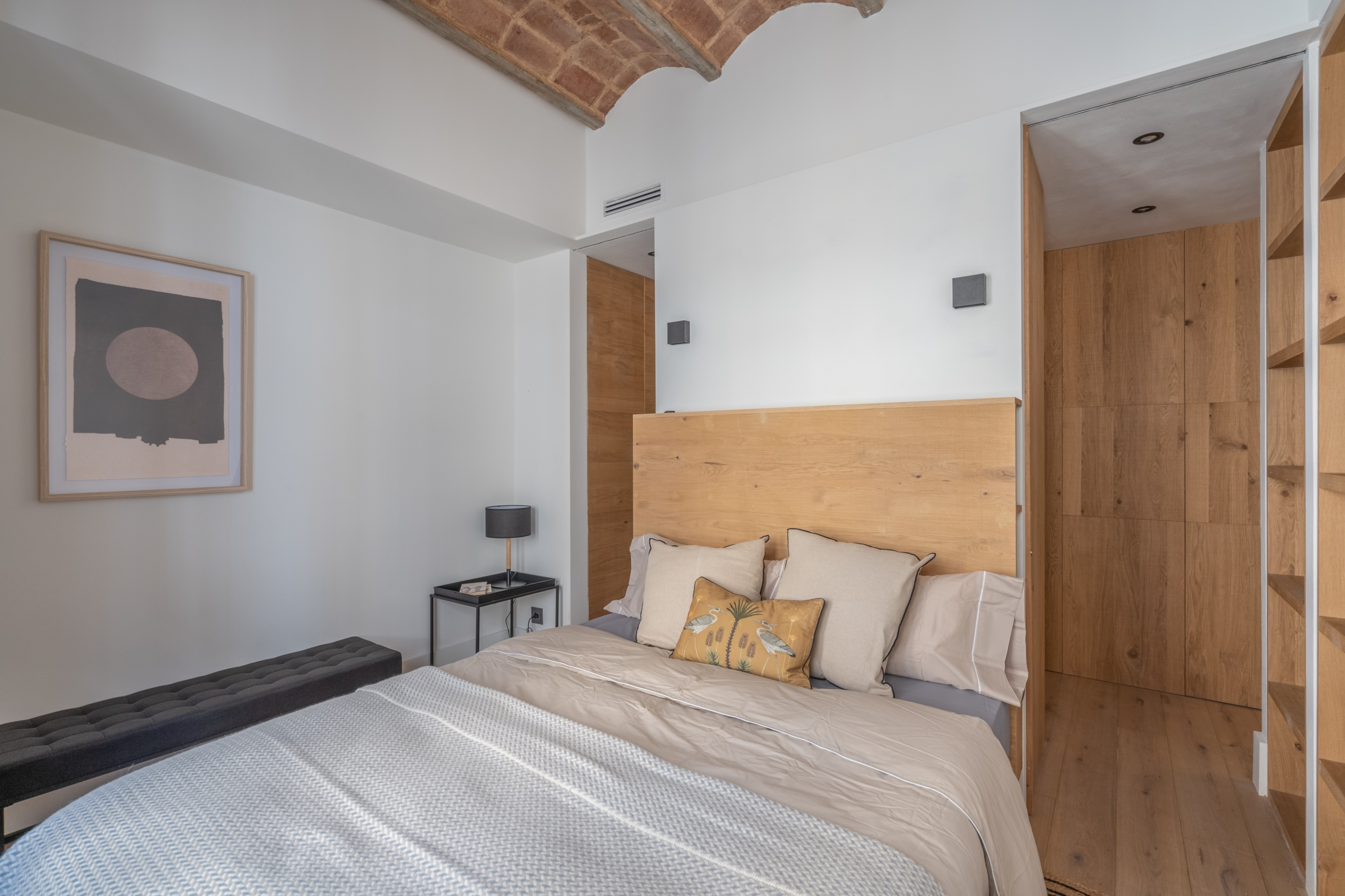 - Decoración: Tonos suaves y acabados de madera que brindan un toque moderno, respetando el encanto de la época con techos abovedados catalanes.