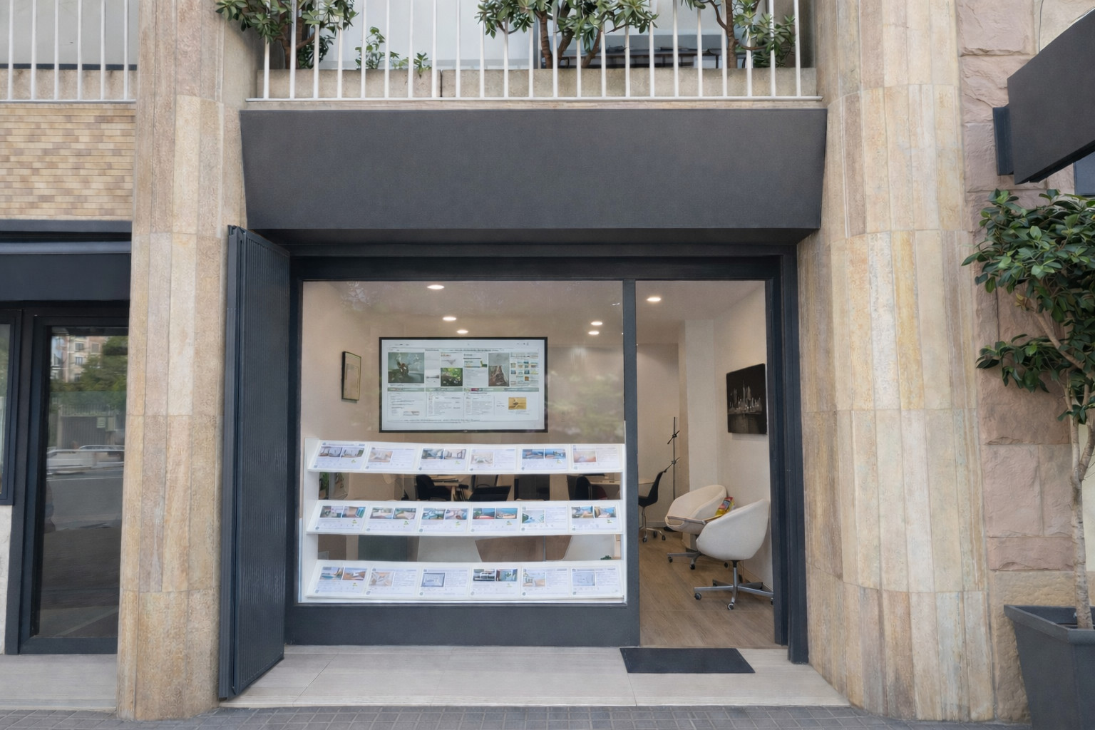 🪟Visibilidad Inmejorable: Amplio escaparate con cristalera a pie de calle para una máxima exposición. Además, cuenta con una pantalla TV de 48” para la presentación de inmuebles, captando la atención de los transeúntes en una de las áreas más transitadas. 📺✨